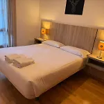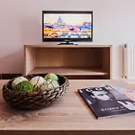 Neste apartamento , os quartos têm TV multicanal e sofá.